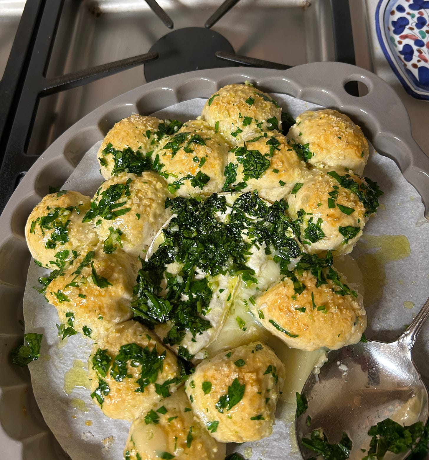 Stuffed pork tenderloin one day, easy, slightly impressive. Garlic bread with baked brie, purely indulgent.