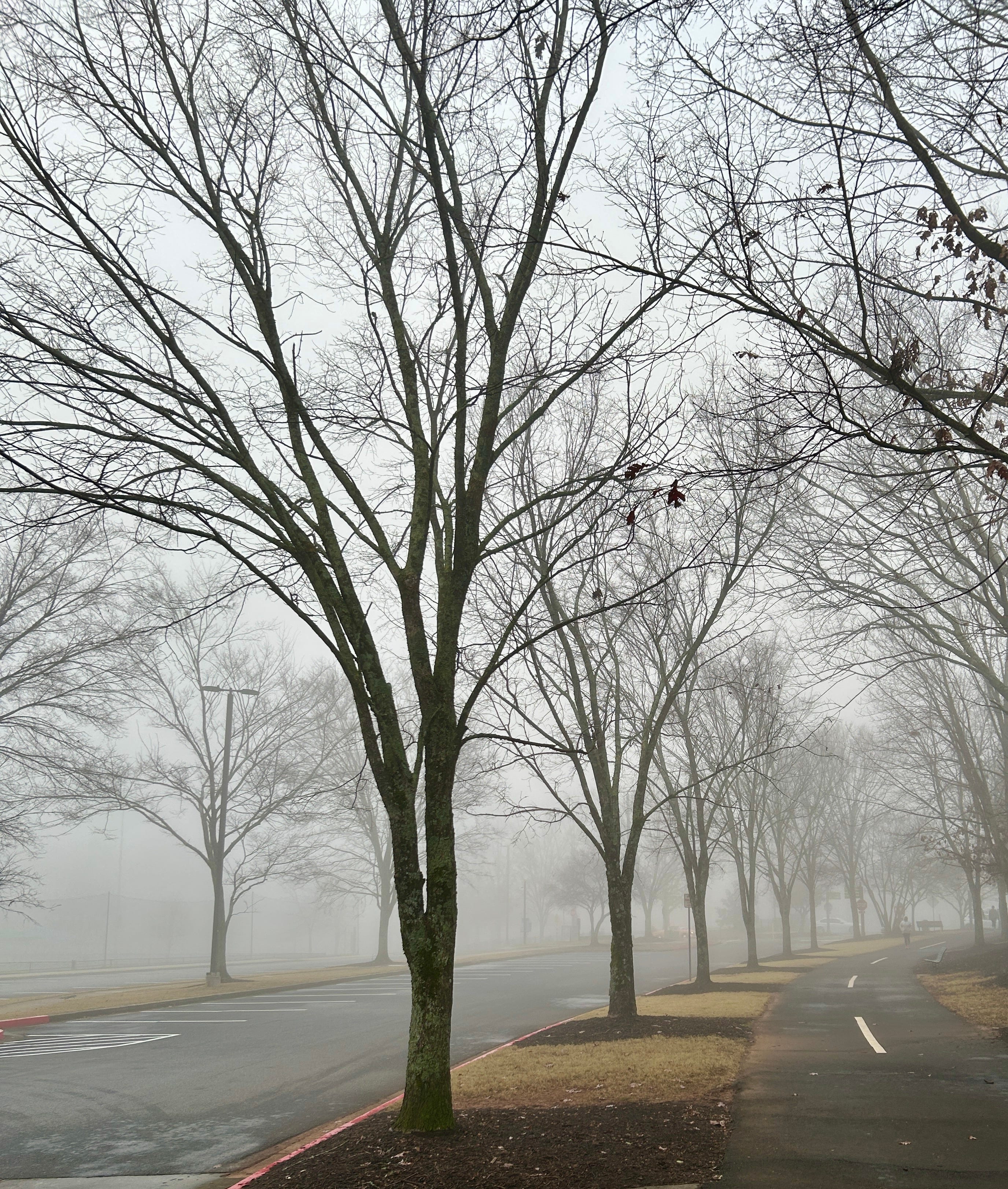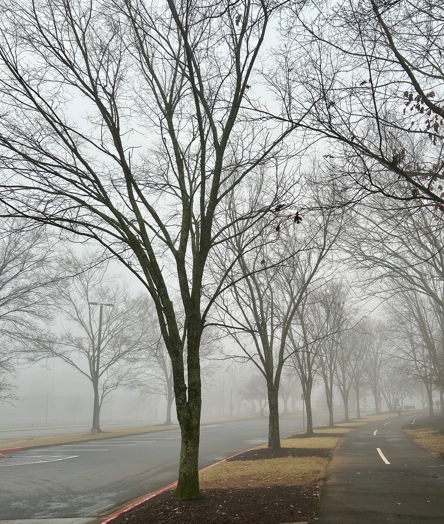 Trying to be aware of nature - birds, plants, foggy morning. I don’t listen to podcasts while walking, trying to be in the moment.