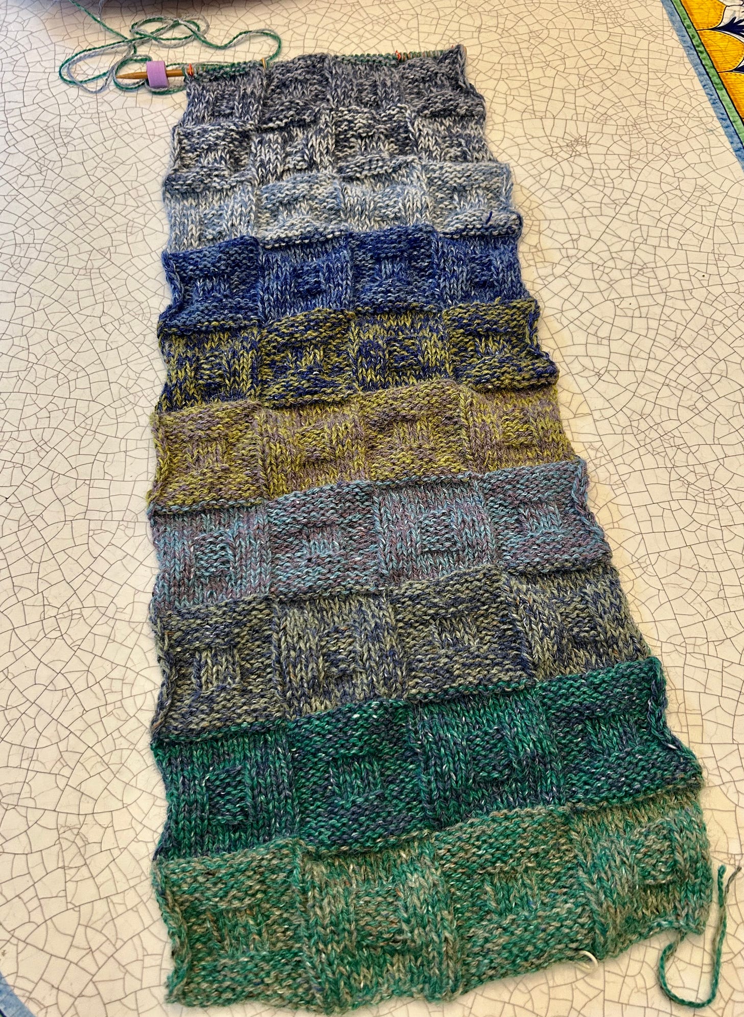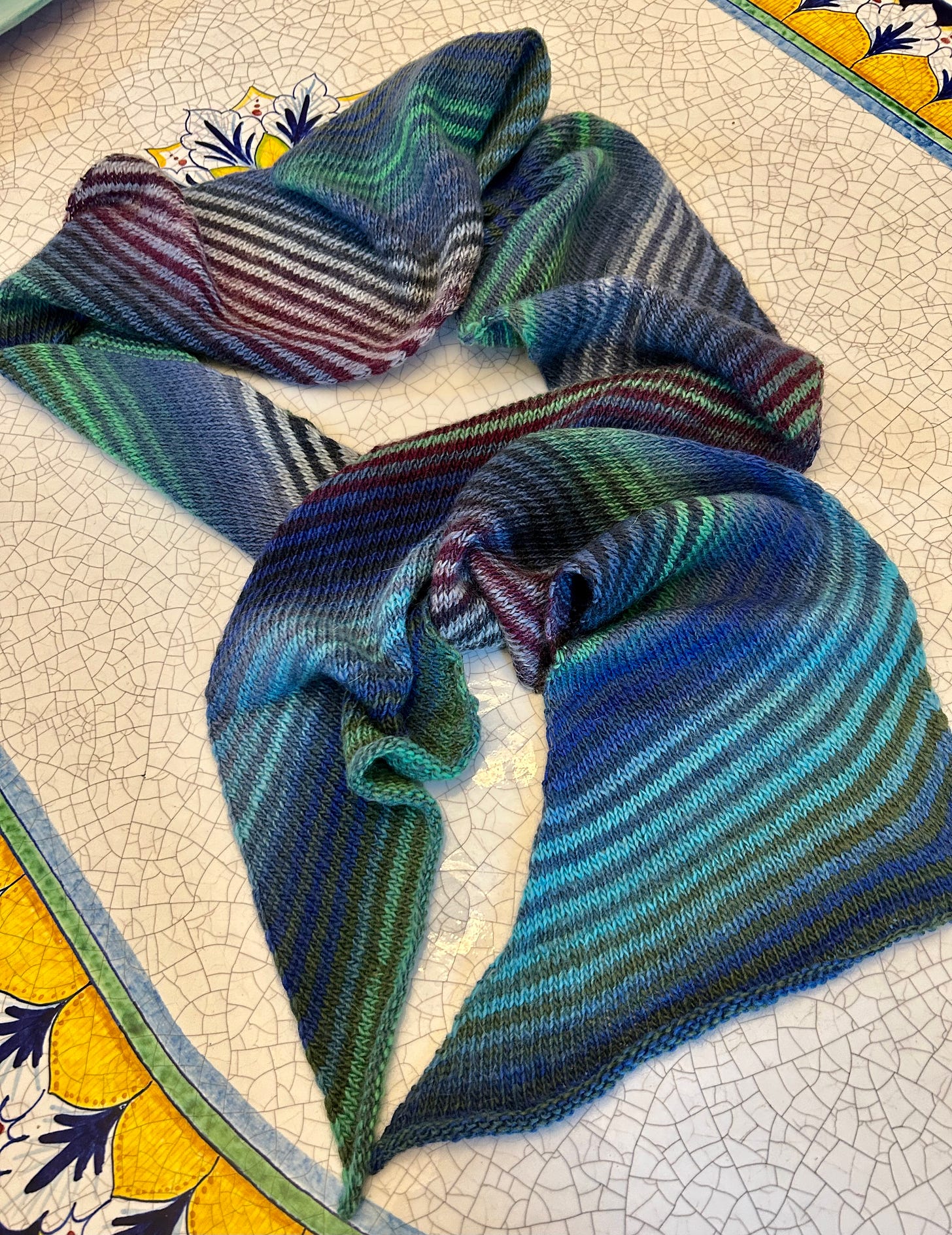 My knitting groups have been very necessary. In person laughing, talking, sharing. I finished my striped scarf just in time for 60 degree weather! I need more cold weather.