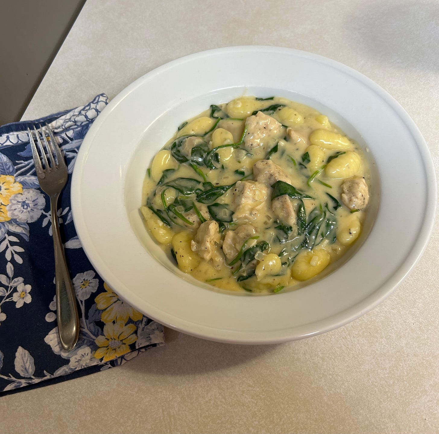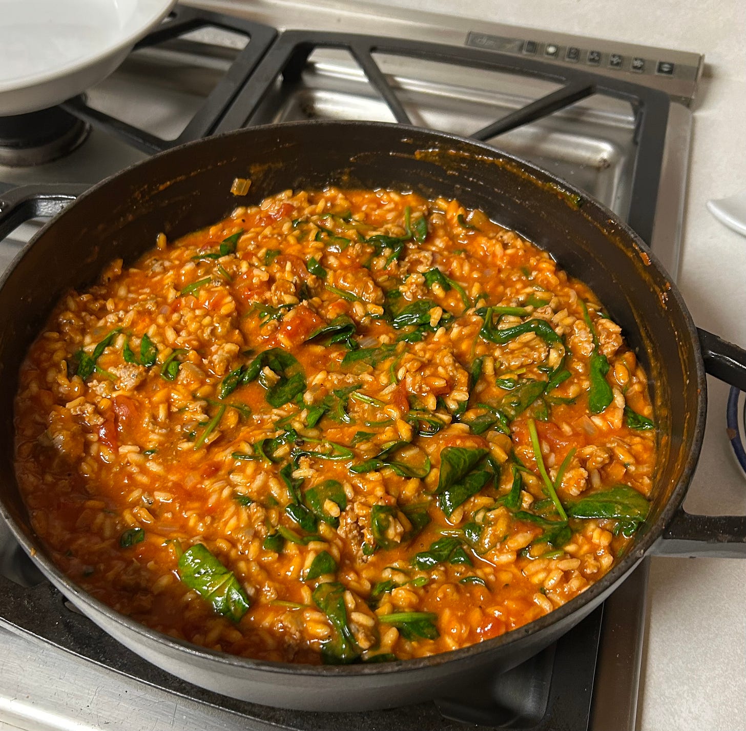 Chicken gnocchi (cubed the chicken, 5 ounce bag baby spinach), tomato and sausage risotto, black bean tacos, (blue corn shells).