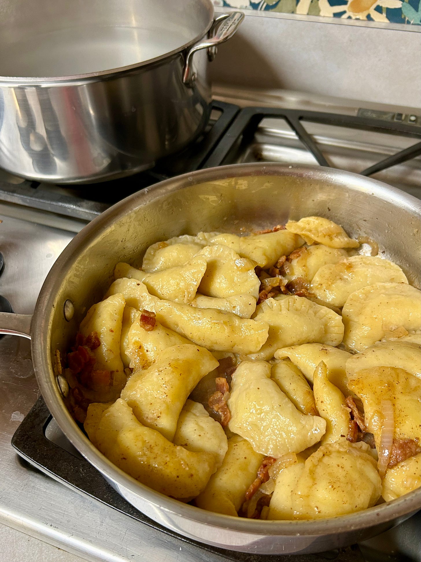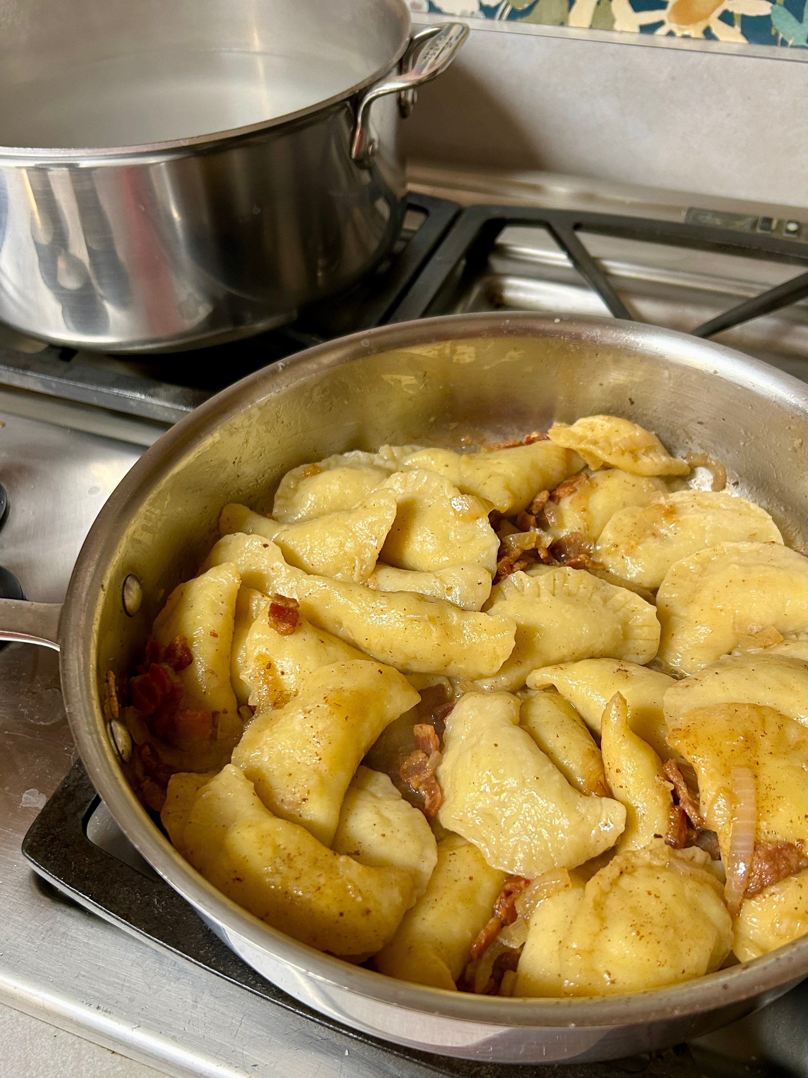 I could jump in the pan with those pierogies. They made my mouth water. All your food looks delicious and reminds me that I need to cook more. I've been trying to finish a quilt for a deadline, so I made Door Dash rich this week, and when Alan asked if there was anything to eat, I'd holler out, 'It's on the porch!' Sewing became more important than cooking in my life at some point. Is there a balance?